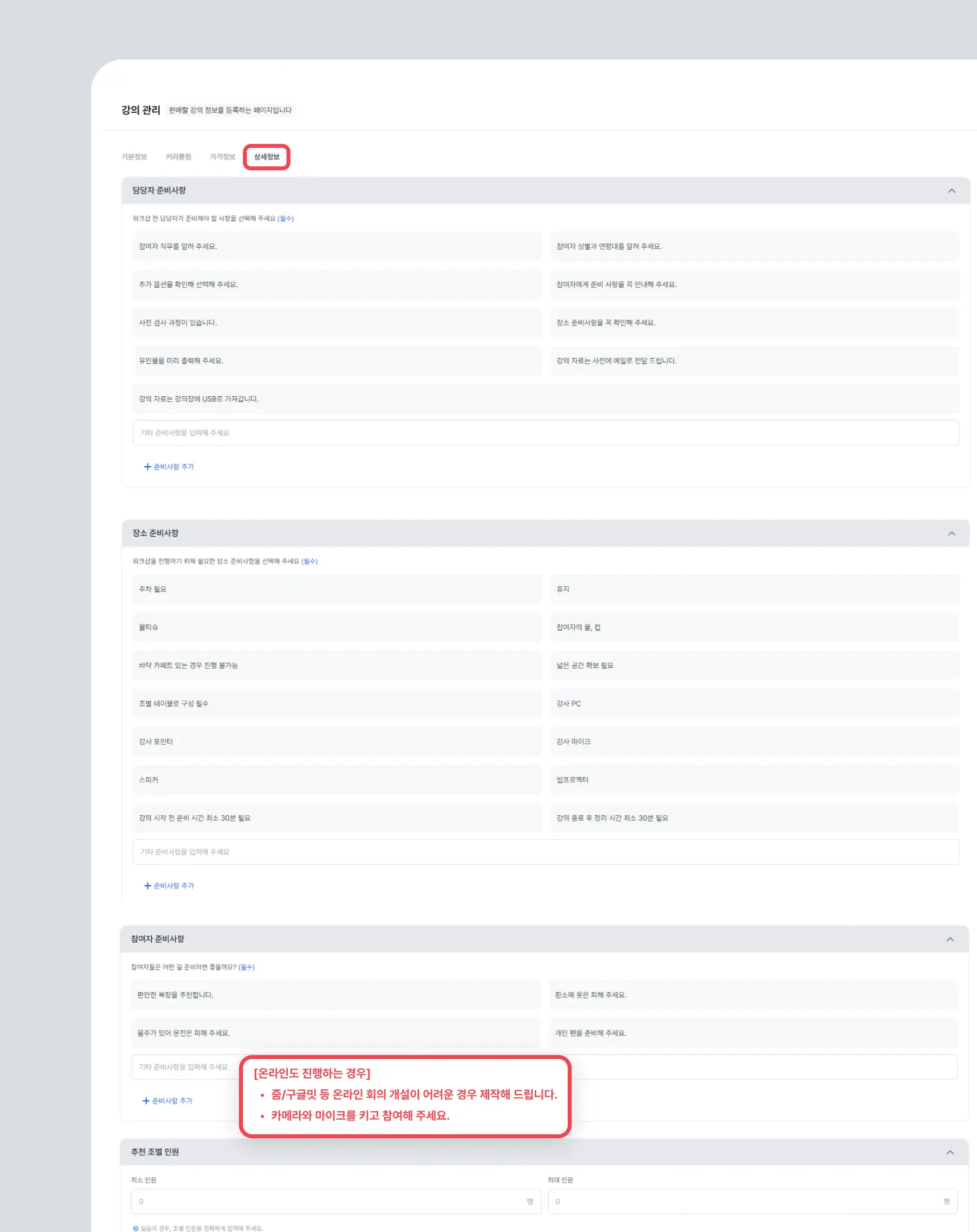 예시) 50명 이상 진행 시, 보조강사 1명 포함