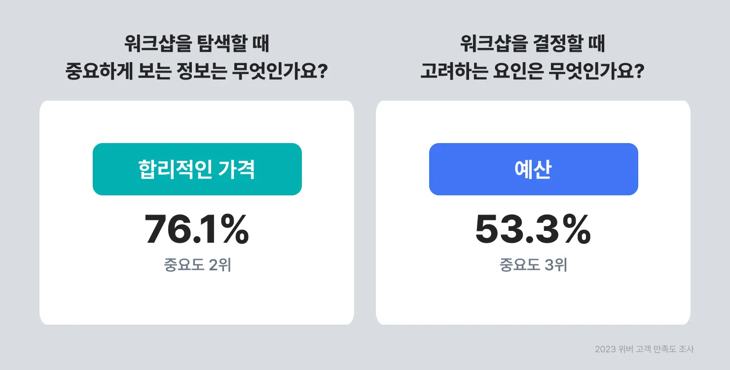 위버를 이용하는 구매자(기업 담당자)는 개인이 아닌 단체를 위한 워크샵을 담당해요.