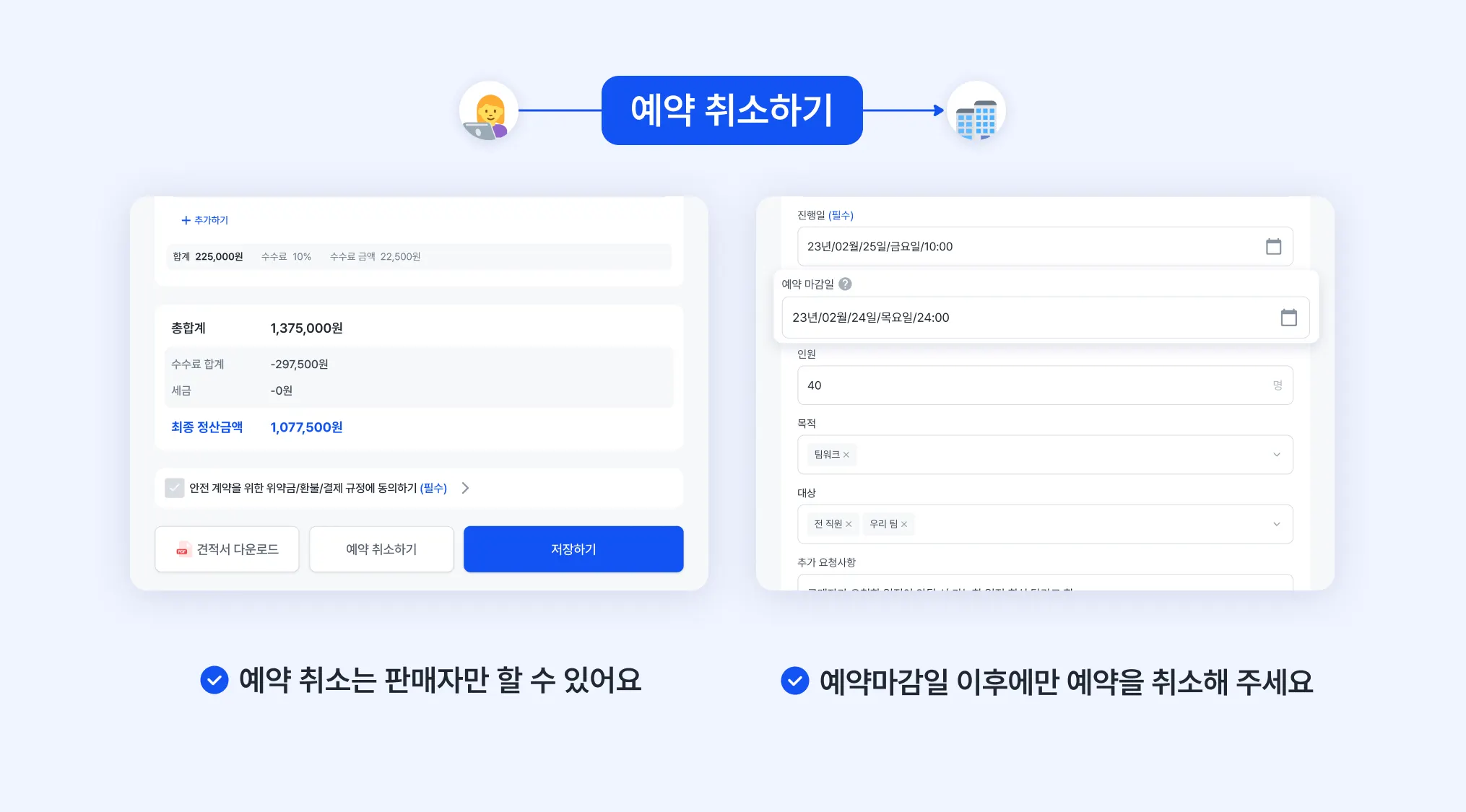 구매자는 예약 마감일 전까지만 예약할 수 있어요.