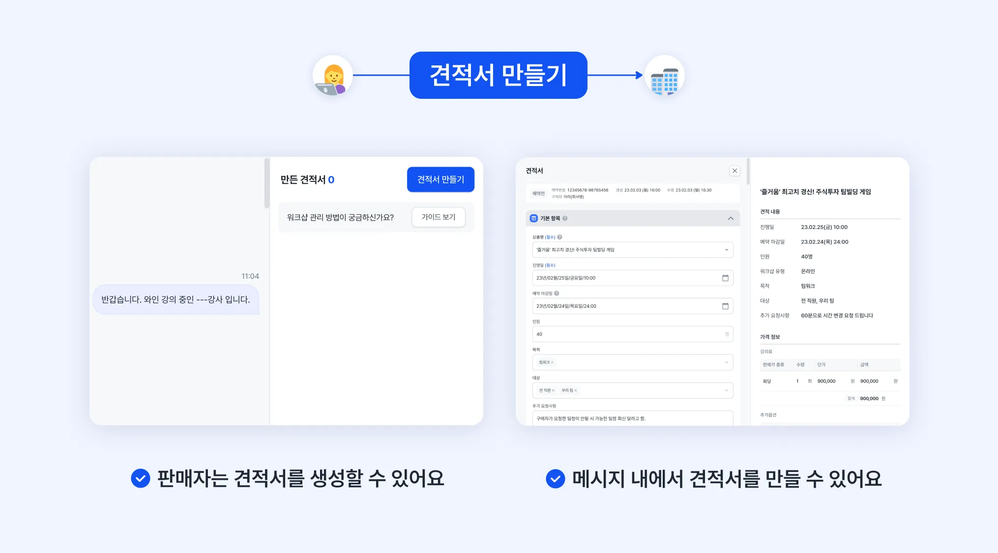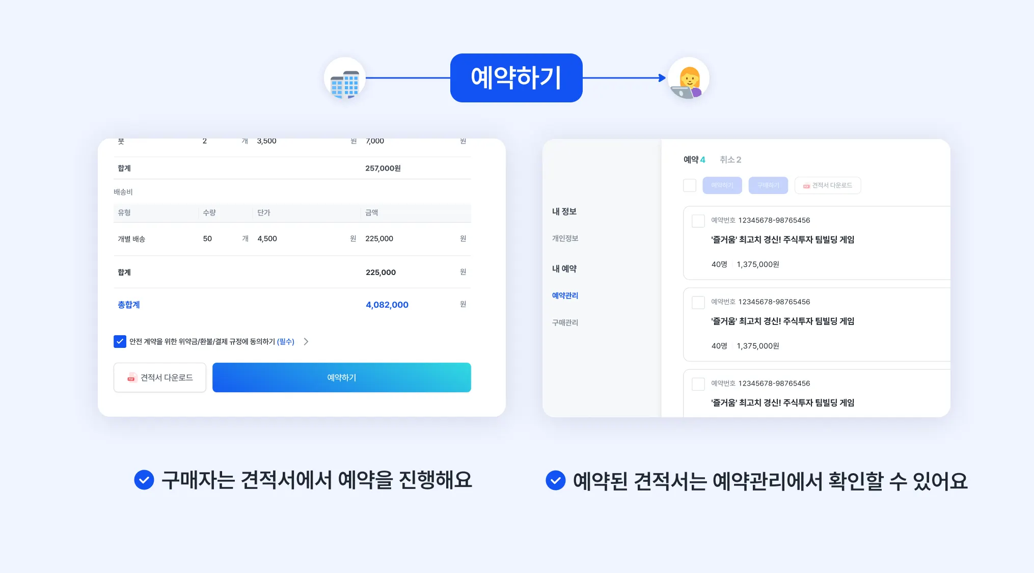 견적서를 생성·수정하면, 구매자도 실시간으로 볼 수 있어요.