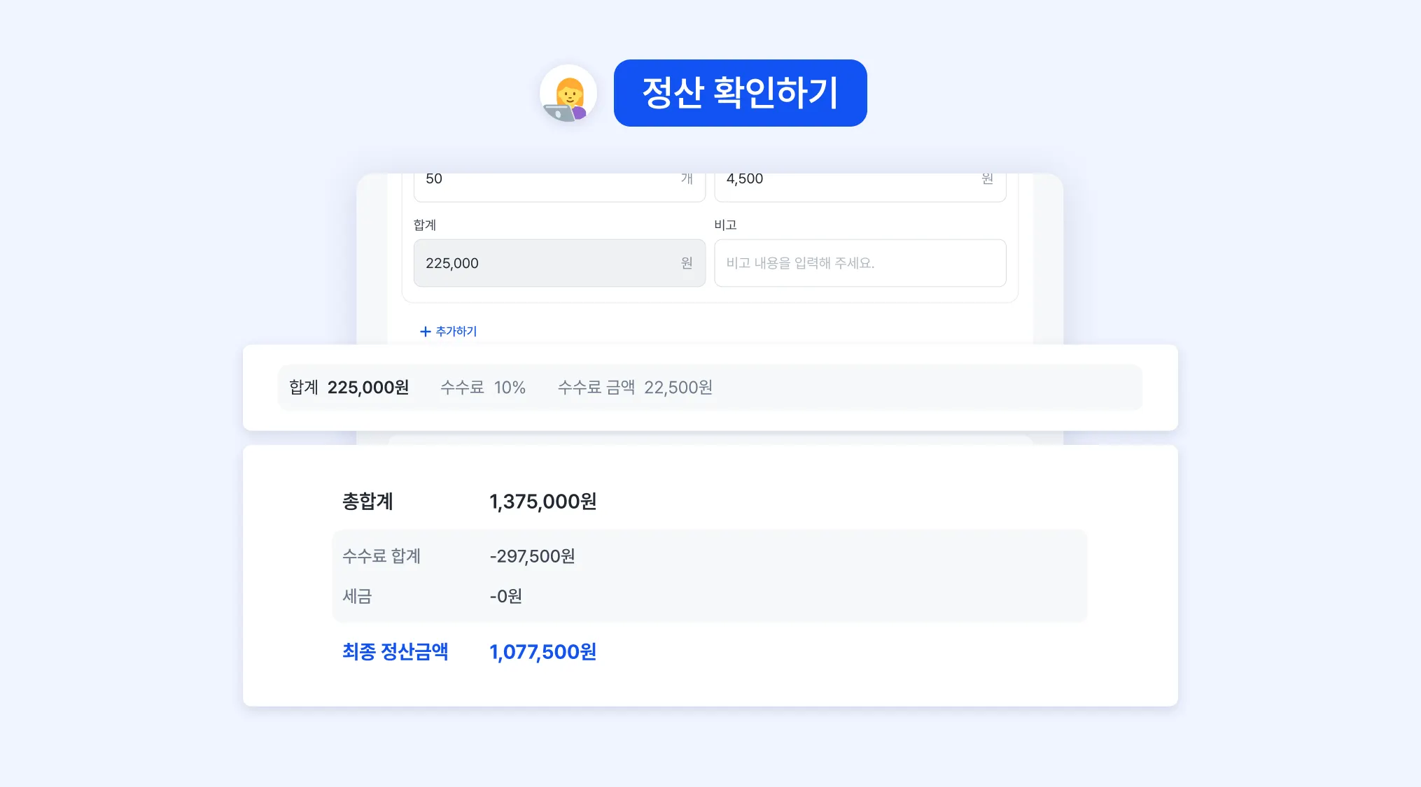 수수료율과 금액을 견적서에서 바로 확인하실 수 있어요.