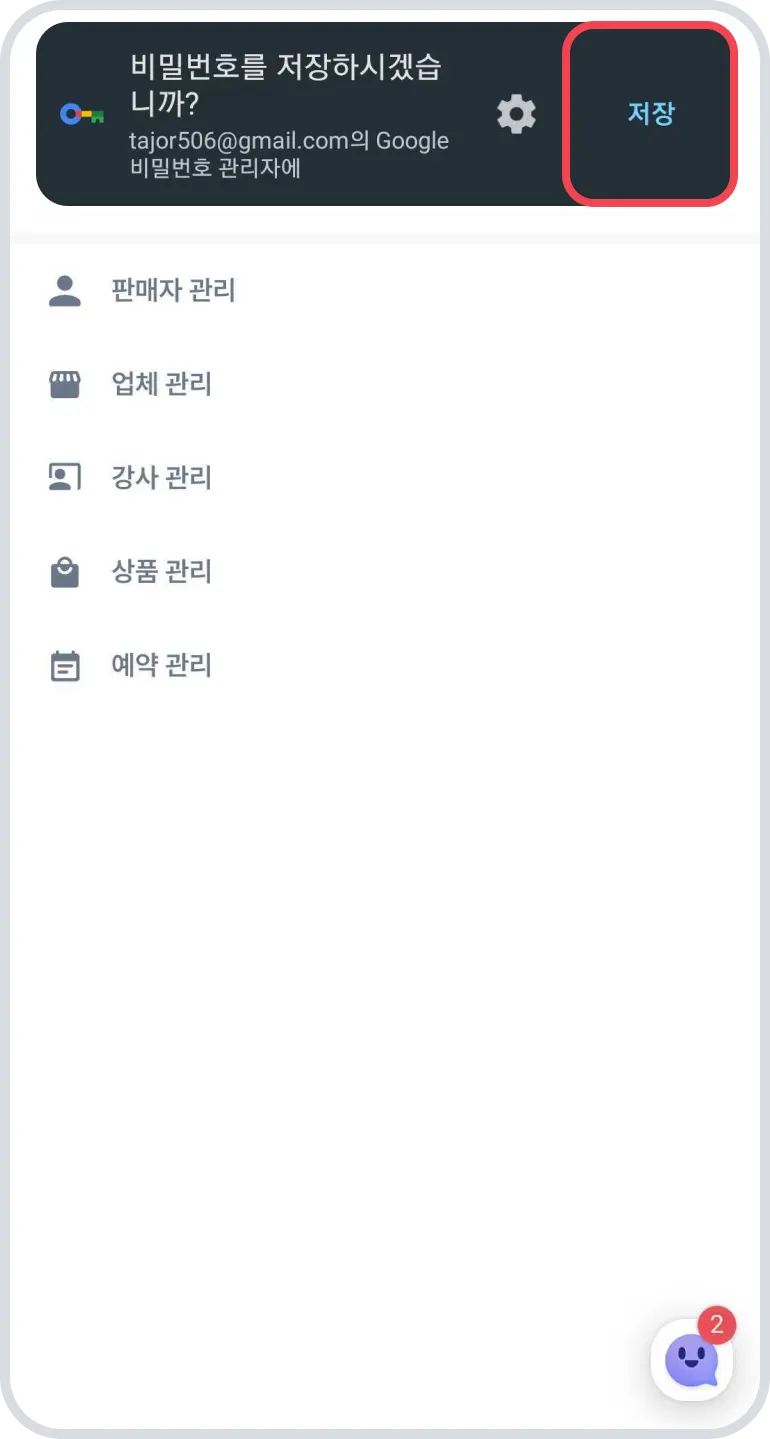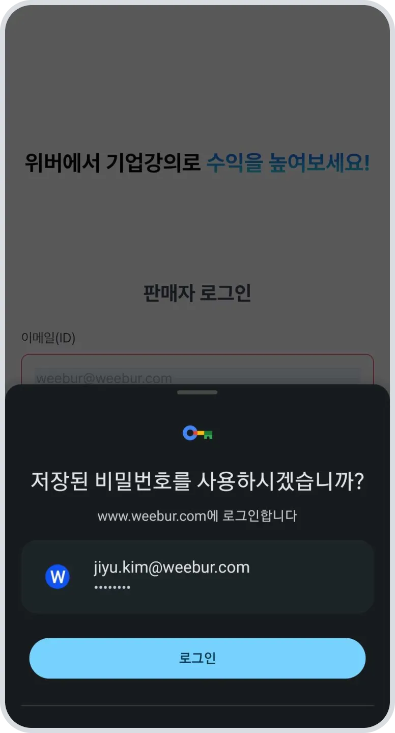 계정 입력 후 팝업창의 암호 저장을 클릭해주세요.
