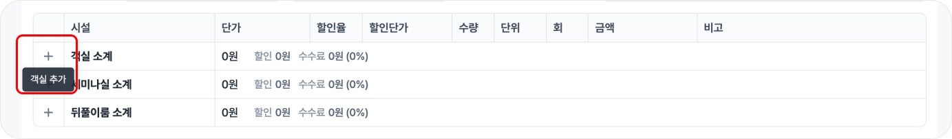 ‘+’ 버튼을 눌러 원하는 시설을 추가해 주세요.