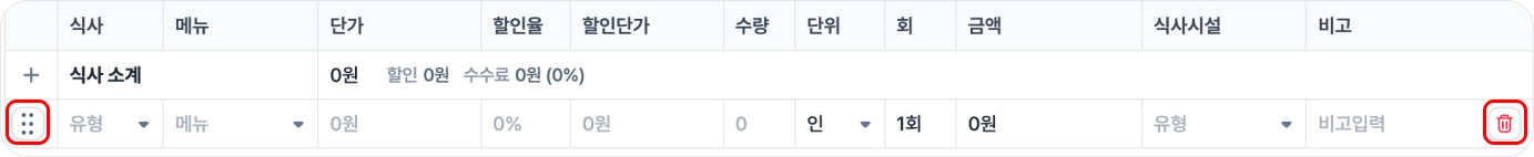 좌측 정렬 버튼 : 드래그 앤 드랍으로 시설의 순서를 변경할 수 있습니다.