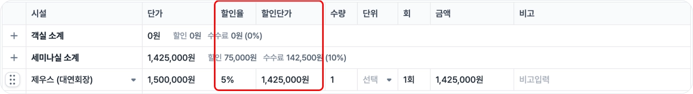 옵션을 선택 후 반영된 가격에서 할인율과 할인 단가를 입력해 할인을 적용해 보세요.