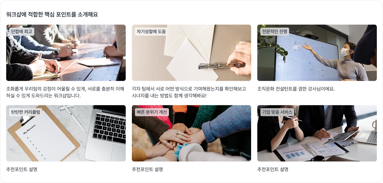 견적서에서 반복 안내하던 내용을 한번만 작성하실 수 있도록 개선했습니다. 상세하게 작성하실수록 운영이 편리해질 거에요.