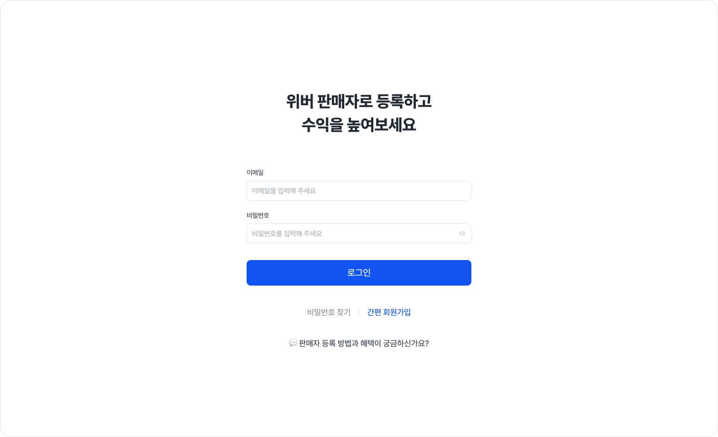기존 이메일, 비밀번호로 로그인해 주세요. [파트너센터 링크]