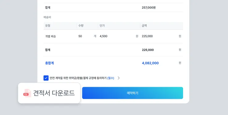 기업 담당자는 견적서 개별 또는 일괄 다운로드 가능합니다