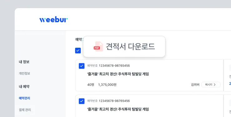 (또는 마이위버-예약관리-견적서 확인 가능)